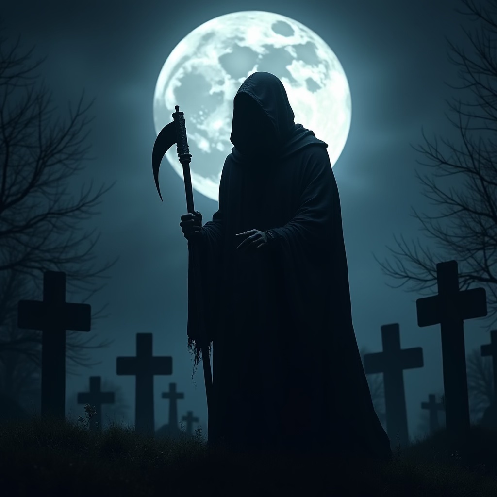 tall black-cowled black-robed