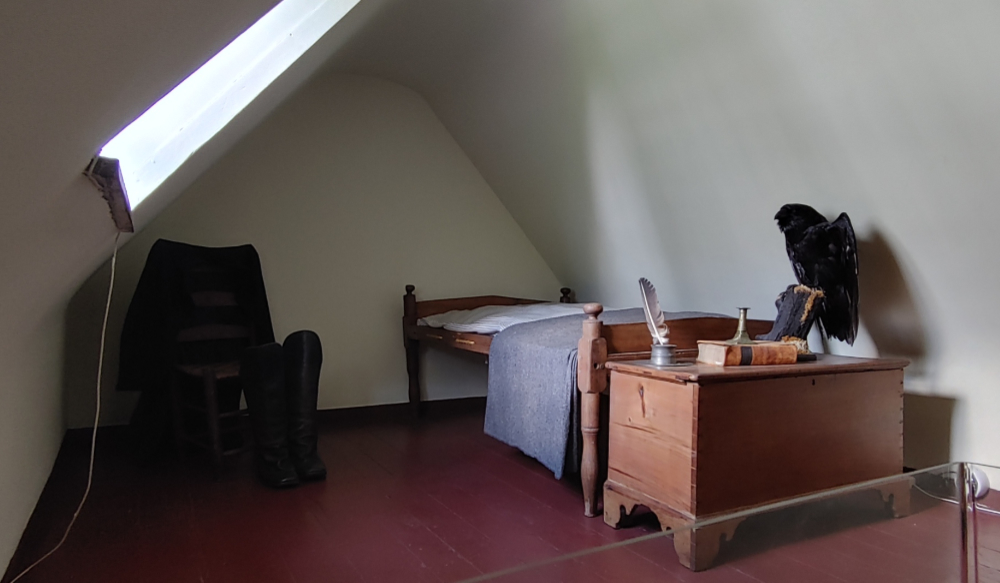 The first thing that struck me about the Edgar Allan Poe house is how small it is. Yes, it’s two-stories tall, but it only has six rooms. A sitting room and kitchen downstairs, two bedrooms upstairs, a tiny loft room and a cellar. I gather Poe lived there with four other people: his aunt, Maria Clemm; her 10-year-old daughter Virginia, who Poe would later marry; her 14-year-old son Virginia; and finally, Poe’s bed-ridden elderly grandmother, Elizabeth Poe. It’s not entirely sure who occupied which rooms. The loft was decorated as though it was Poe’s room and it’s believed he did use the room when he first occupied the house, but it’s believed he moved into one of the other rooms when more of the family moved in.